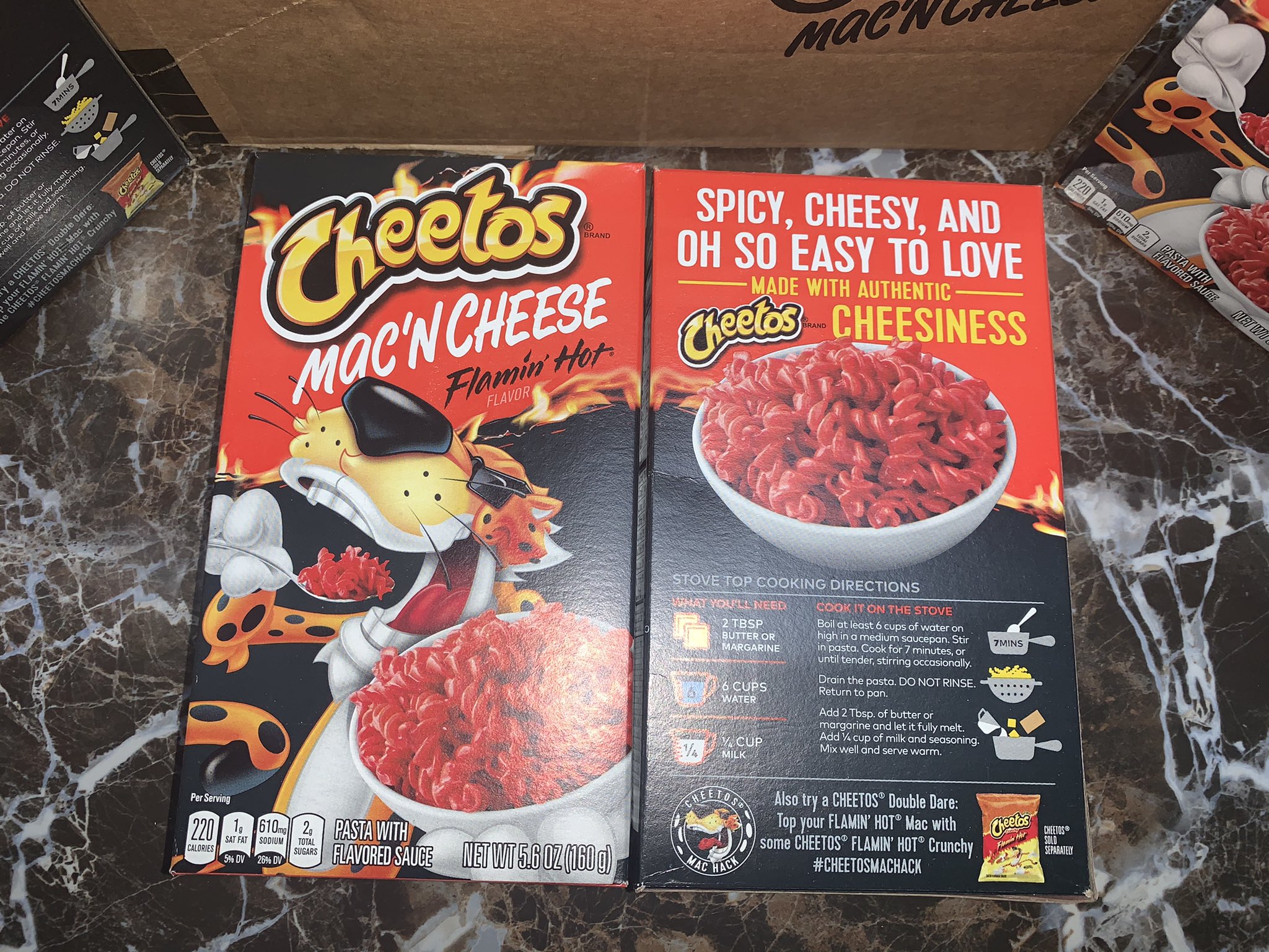 Cheetos Flamin' Hot Nutrition Facts • MyFoodDiary® Cheetos Baked Flamin' Hot Crunchy Cheese Snacks. 34 pieces (28g) Nutrition Facts. 140 calories. Log food. Cheetos Flamin' Hot Mac 'N Cheese Microwaveable container. 1 container (60g) Nutrition Facts. 210 calories.