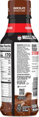 Calories in Muscle Milk Genuine Chocolate and Nutrition Facts - FatSecret 5g. Carbs. 9g. Protein. 25g. There are 160 calories in 14 fl oz (414 ml) of Muscle Milk Genuine Chocolate. Calorie breakdown: 25% fat, 20% carbs, 55% protein. Muscle Milk Nutrition Facts. Calories, carbs, fat, sodium & more ... Get nutrition information for Muscle Milk items and over 200,000 other foods (including over 3,500 brands). Track calories, carbs, fat, sodium, sugar & 14 other nutrients. ... Muscle Milk Genuine Protein Powder - Peanut Butter & Chocolate. 2 scoops (70g) Nutrition Facts. 310 calories.