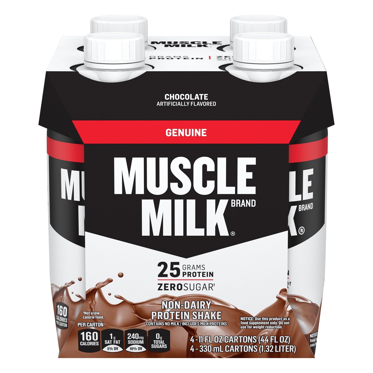 MUSCLE MILK® GENUINE Protein Shake Own Your Strength. MUSCLE MILK GENUINE Protein Shake 25 grams of high-quality protein to help support muscle rebuilding, muscle growth, and maintenance of muscle mass Zero sugar 6 grams of fiber Good source of Calcium and Vitamins A, C, & D BUY NOW Flavors Banana Crème Chocolate Cookies 'n Crème Strawberries 'n Crème Vanilla Crème Benefits Filter
