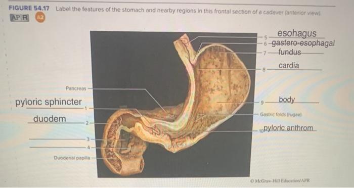 Solved Label the anatomical features of the stomach and | Chegg.com Question: Label the anatomical features of the stomach and nearby regions in the frontal section of a cadaver (anterior view) by clicking and dragging the ...